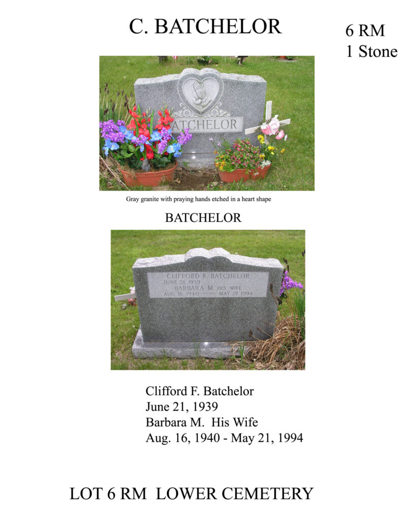 BLOCK: Right | LOT #: 6a RM | LOT SIZE: 4 | LOT OWNER # 1: Gordon Batchelor | PEOPLE BURIED THERE: Gordon Batchelor | LAST NAME: Batchelor