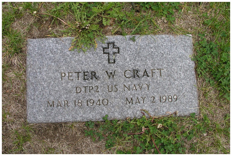Plot Data: BLOCK: Right | LOT #: 5 RO | PEOPLE BURIED THERE: Phillip Craft | LAST NAME: Craft | DATE OF DEATH: 1989