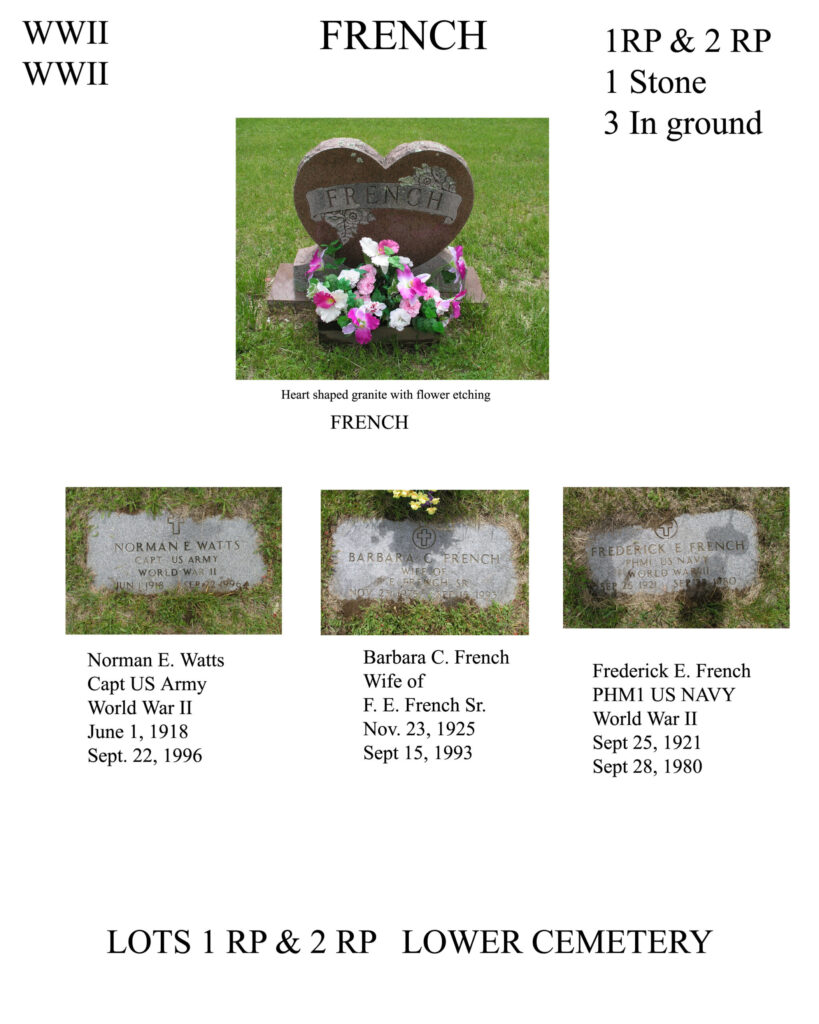 BLOCK: Right | LOT #: 1 & 2 RP | PEOPLE BURIED THERE: Barbara Cleone French | LAST NAME: French | DATE OF DEATH: Sept. 15 1993