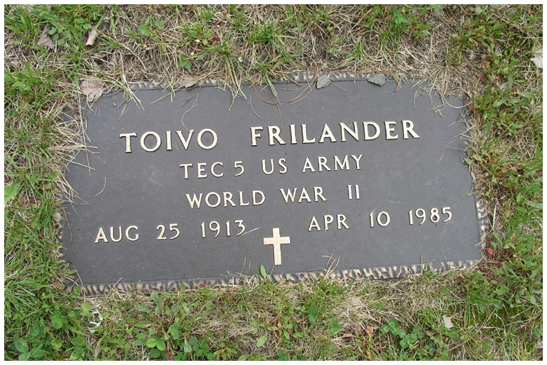Plot Data: BLOCK: Right | LOT #: 2 RN | PEOPLE BURIED THERE: Helvi Frilander | LAST NAME: Frilander | DATE OF DEATH: 33810