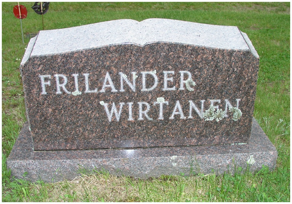 Plot Data: BLOCK: Right | LOT #: 2 RN | PEOPLE BURIED THERE: Helvi Frilander | LAST NAME: Frilander | DATE OF DEATH: 33810