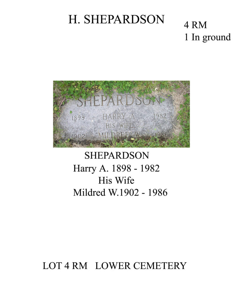 BLOCK: Right | LOT #: 4 RM | PEOPLE BURIED THERE: Mildred W. Shepardson | LAST NAME: Shepardson | DATE OF DEATH: 1986