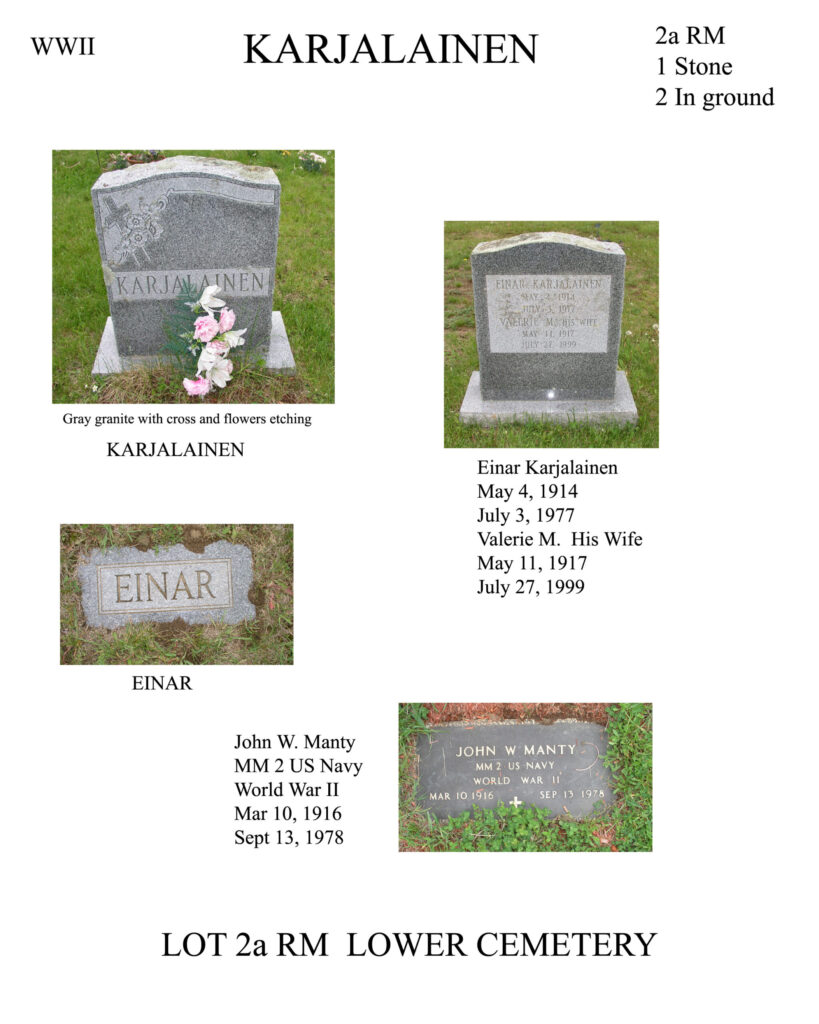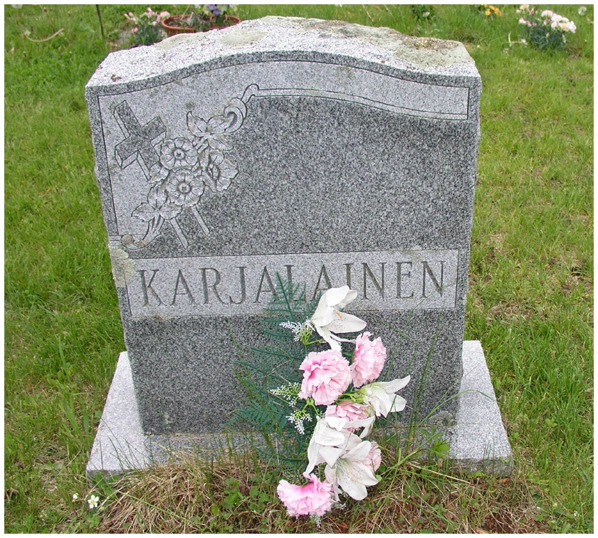 BLOCK: Right | LOT #: 2a RM | PEOPLE BURIED THERE: Valerie Karjalainen | LAST NAME: Karjalainen | DATE OF DEATH: 36368