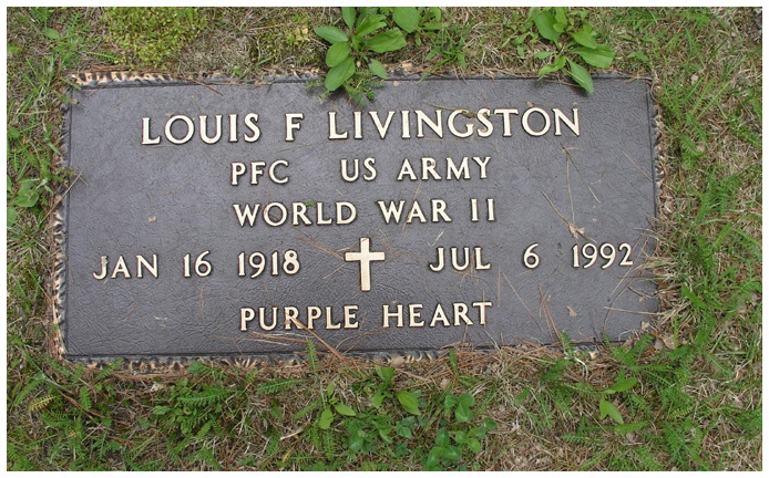 BLOCK: Right | LOT #: 1 RS | PEOPLE BURIED THERE: Louis F. Livingston | LAST NAME: Livingston | DATE OF DEATH: 33791 | VETERAN: WWII | NOTES: Purple Heart